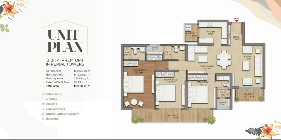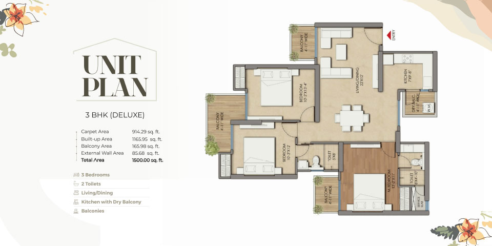 To get an idea of the space covered, layout and room sizes, browsing through the floor plan would help. At Prateek Grand Begonia you can choose from 2 configurations that are available in 5 types of floor plans or layouts. Spacious balconies and well-fitted bathrooms ensure a ventilated environment in these configurations. To get an idea of the space covered, layout and room sizes, browsing through the floor plan would help. The various types of floor plans of different units in Prateek Grand Begonia can be viewed.